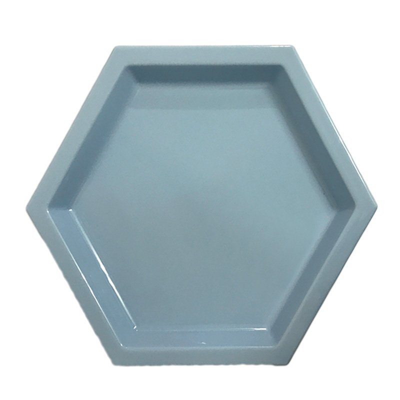 Bandeja de Plástico Hexagonal 21cm Azul Tiffany Nossa bandeja possui 21cm de largura, 24cm de altura e 1,57cm de profundidade.
