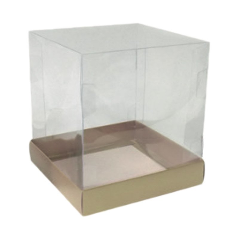 Caixa para Mini Bolo Kraft com tampa de acetato Cada caixa mede 8,5 x 8,5 x 8,5cm. Embalagem contém 10 unidades