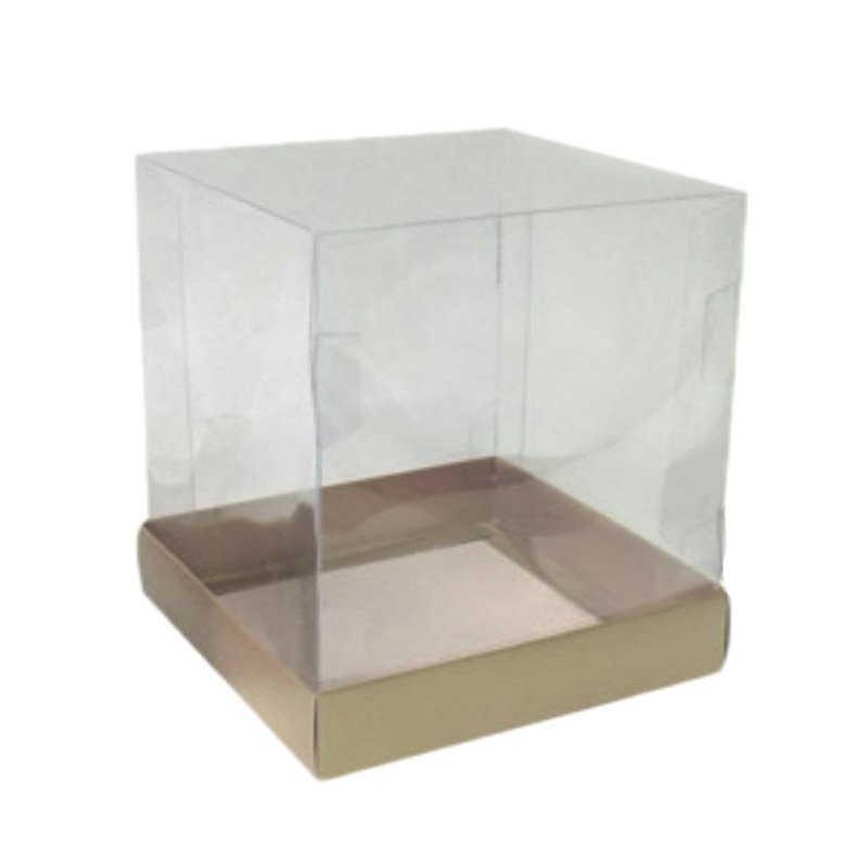 Caixa para Mini Bolo Kraft com tampa de acetato Cada caixa mede 10 x 10 x 10cm. Embalagem contém 10