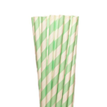 Canudos de Papel Listrados Verde Claro feitos de Papel e Pigmento Atóxico Utilize com bebidas e também para uso decorativo