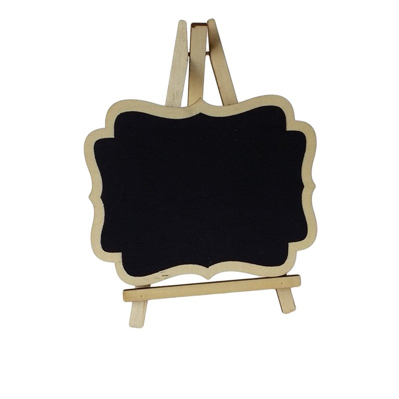 Cavalete de Madeira Natural Pequeno Utilize este mini quadro negro para rotular e decorar sua festa! Escreva nele sua inspiracão. Embalagem