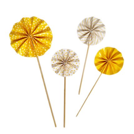 Conjunto Leque Topo para Bolo Amarelo com Branco R$ 15,00