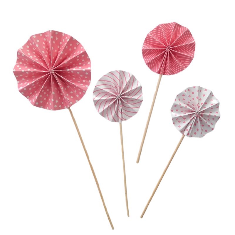 Conjunto Leque Topo para Bolo Rosa com 4 topos. Utilize também nos seus salgados, cupcakes, etc…. use sua imaginação e comemore com estilo.