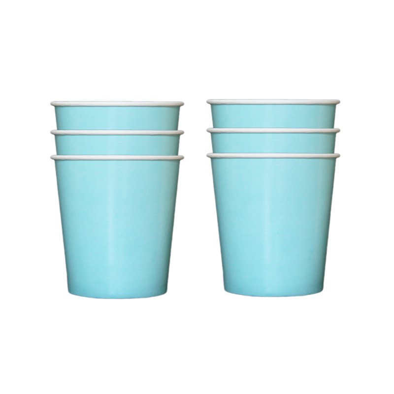 Copos de Papel Horizontal Azul Tiffany – 08 Unidades Cada copo tem capacidade de 240ml, é super resistente podendo ser