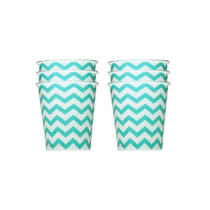 Copos de Papel Zig Zag Azul Tiffany – 08 Unidades