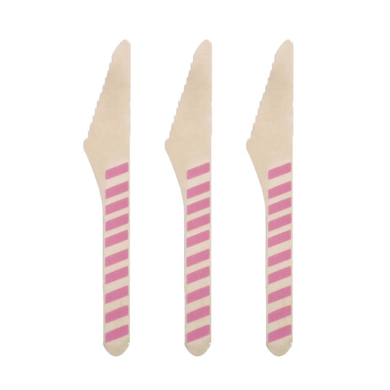Facas Descartáveis de Madeira Listrado Rosa Pink