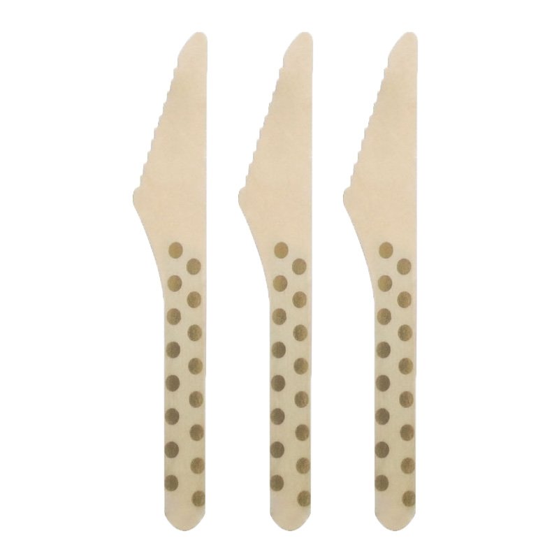 Facas Descartáveis de Madeira Poá Dourado