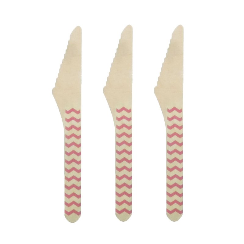 Facas Descartáveis de Madeira Zig Zag Rosa Pink