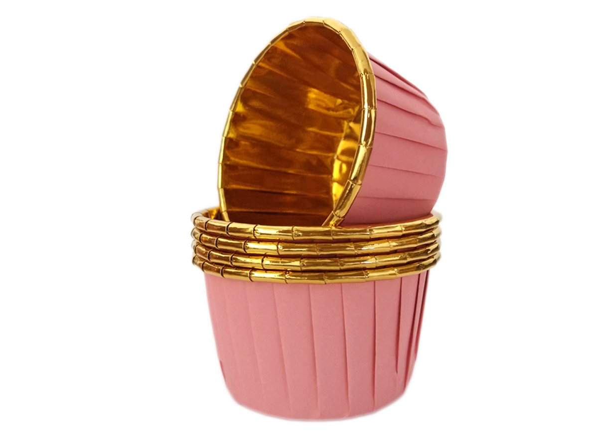 Forminhas para Cupcake de Papel Rosa Clara Lisa com Dourado