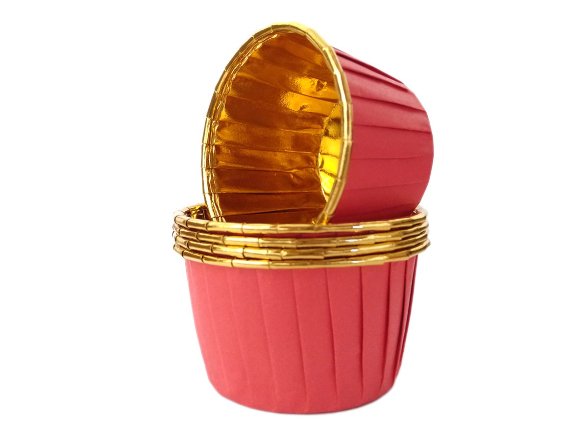 Forminhas para Cupcake de Papel Vermelha Lisa com Dourado