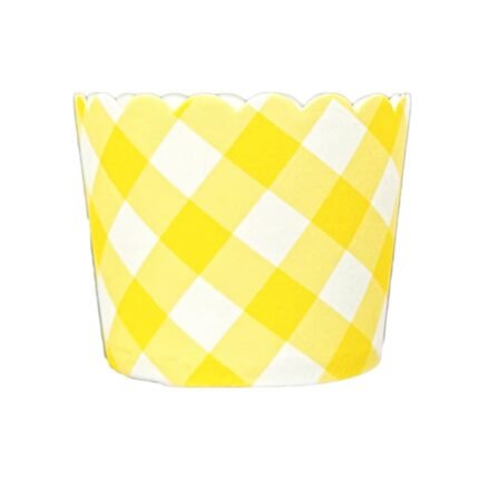 Forminhas para Cupcake de Papel Xadrez Vichy Amarelo EMBALADAS EM SAQUINHOS PLÁSTICOS. Forneáveis – Próprias para irem ao forno! Asse