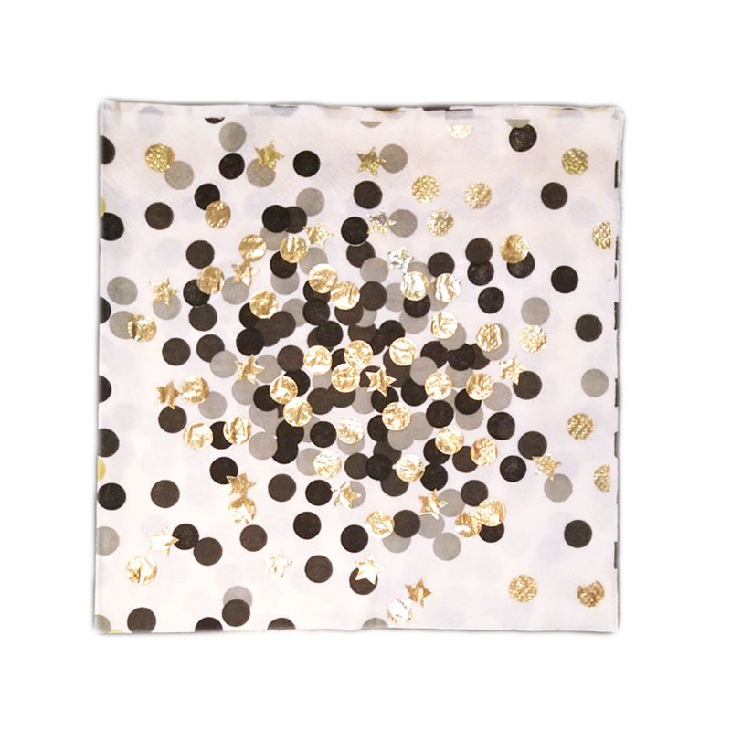 Início Descartáveis Guardanapos de Papel Guardanapo de Papel Poá Preto Cinza e Laminado Dourado 20 Uni