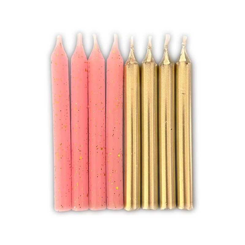 Kit Vela Rosa Clara Glitter com Dourado 9cm com 8un