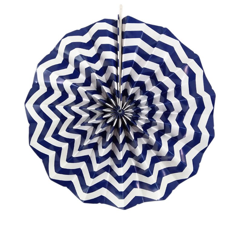 Leque de Papel Azul Marinho Zig Zag 35cm
