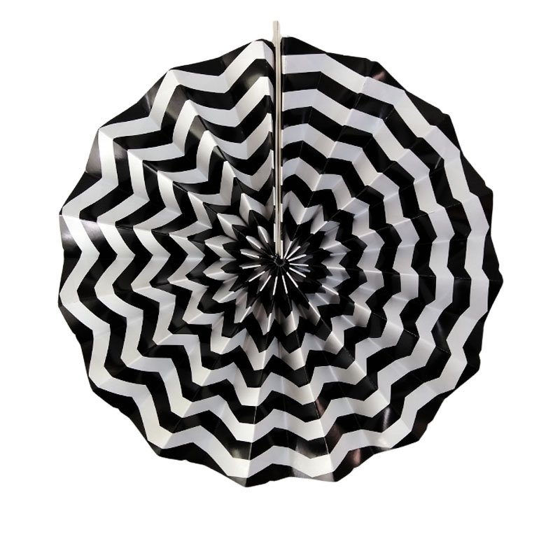 Leque de Papel Preto Zig Zag 35cm