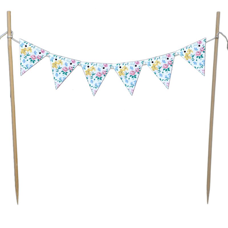 Mini Bandeirinhas para Bolo Flores no Jardim