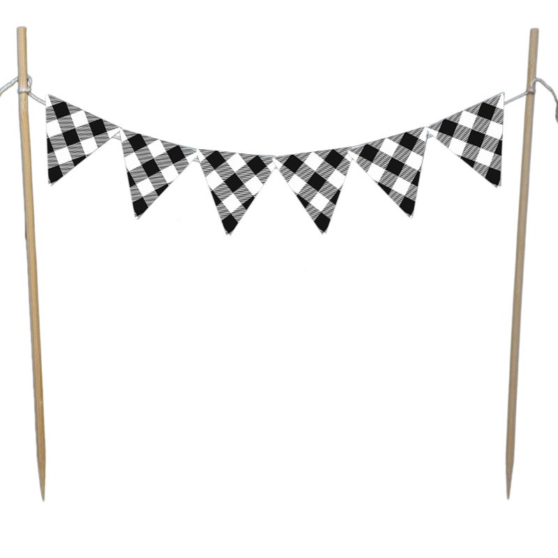 Mini Bandeirinhas para Bolo Xadrez Vichy Preto