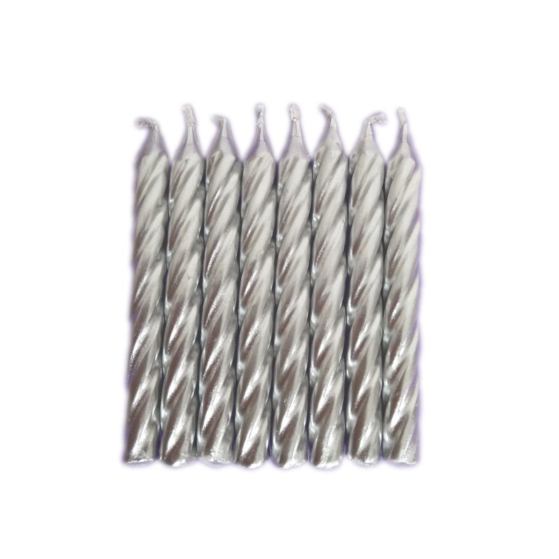 Início Velas Velas Palito Vela Espiral Metalizada Prata 8cm com 8un