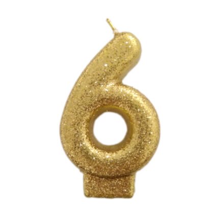Vela Número 6 Dourada Glitter 8cm