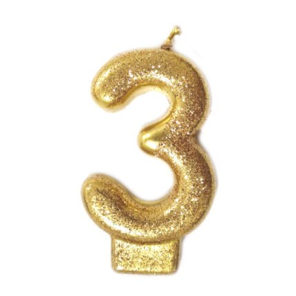 Vela Número 3 Dourada Glitter 8cm
