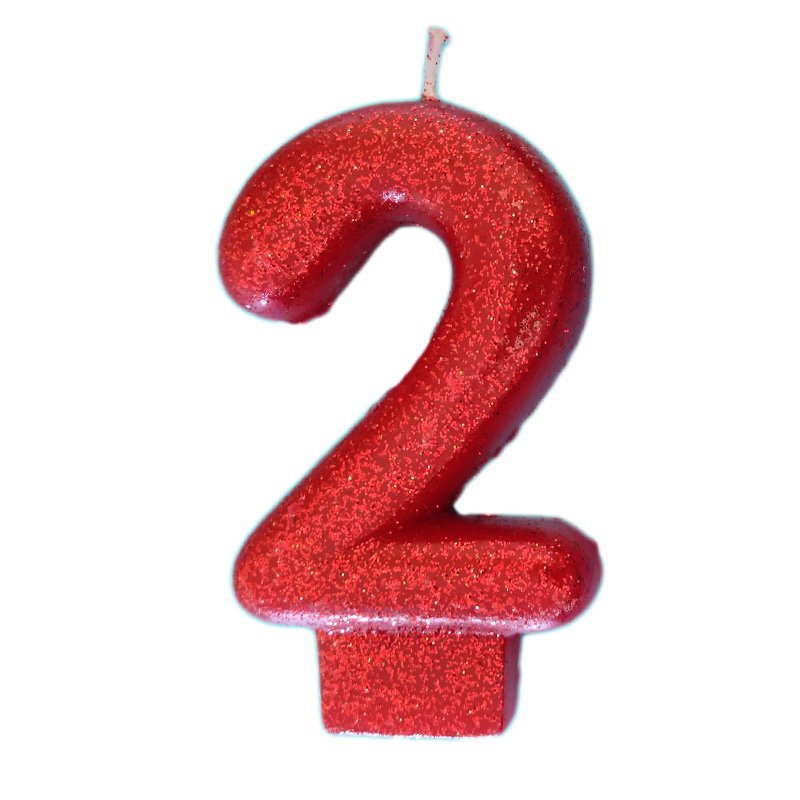 Início Velas Velas Numeros Vela Número 2 Vermelha Glitter 8cm