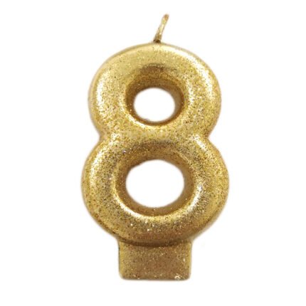 Vela Número 8 Dourada Glitter 8cm R$ 7,00