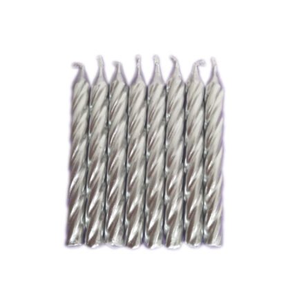 Vela Espiral Metalizada Prata 8cm com 8un
